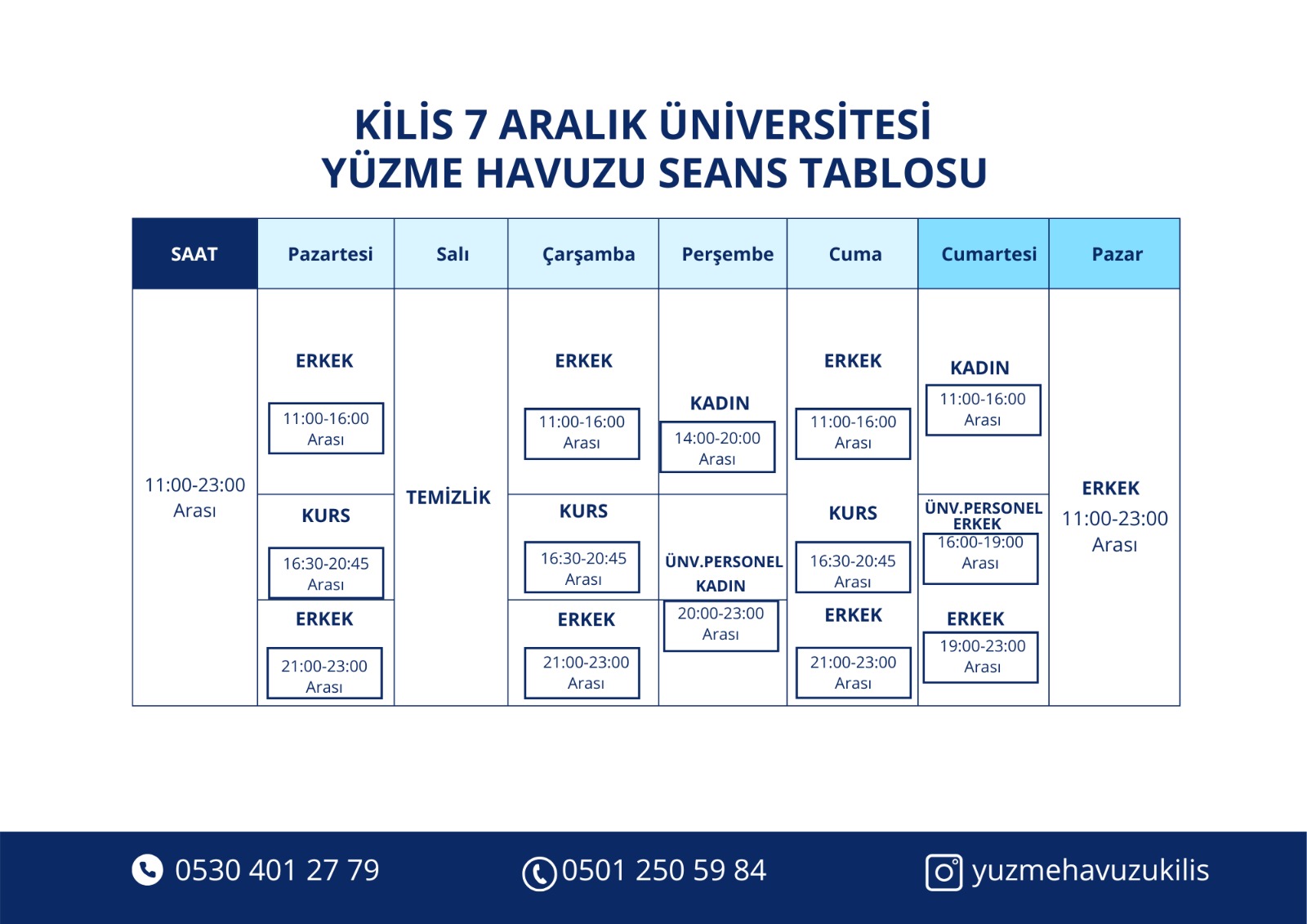 * Yüzme Havuzu Seans Tablosu İçin Tıklayınız.